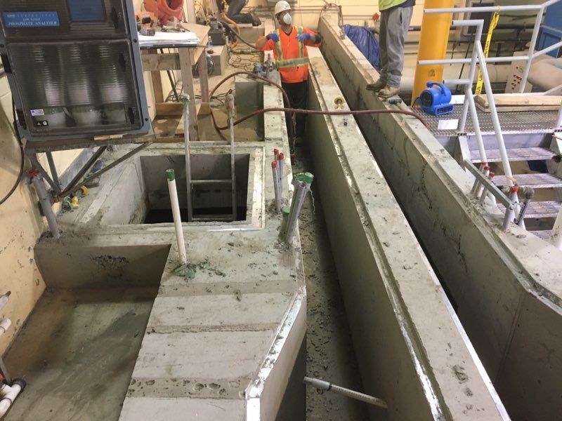 This 10-week project consisted of installing new Owner-supplied UV disinfection system and UV level control system within the existing WWTP. To accommodate the new equipment, Carver removed an existing grout wall and constructed a new cast-in-place channel dividing wall. Other modifications to the plant were to the existing jib crane, a new telescoping boom, railing (modifications and new), replacement of hatches, and a new concrete curb with new aluminum treadplate and grating to raise the floor level. The existing reclaim piping and valves also needed to be replaced.
